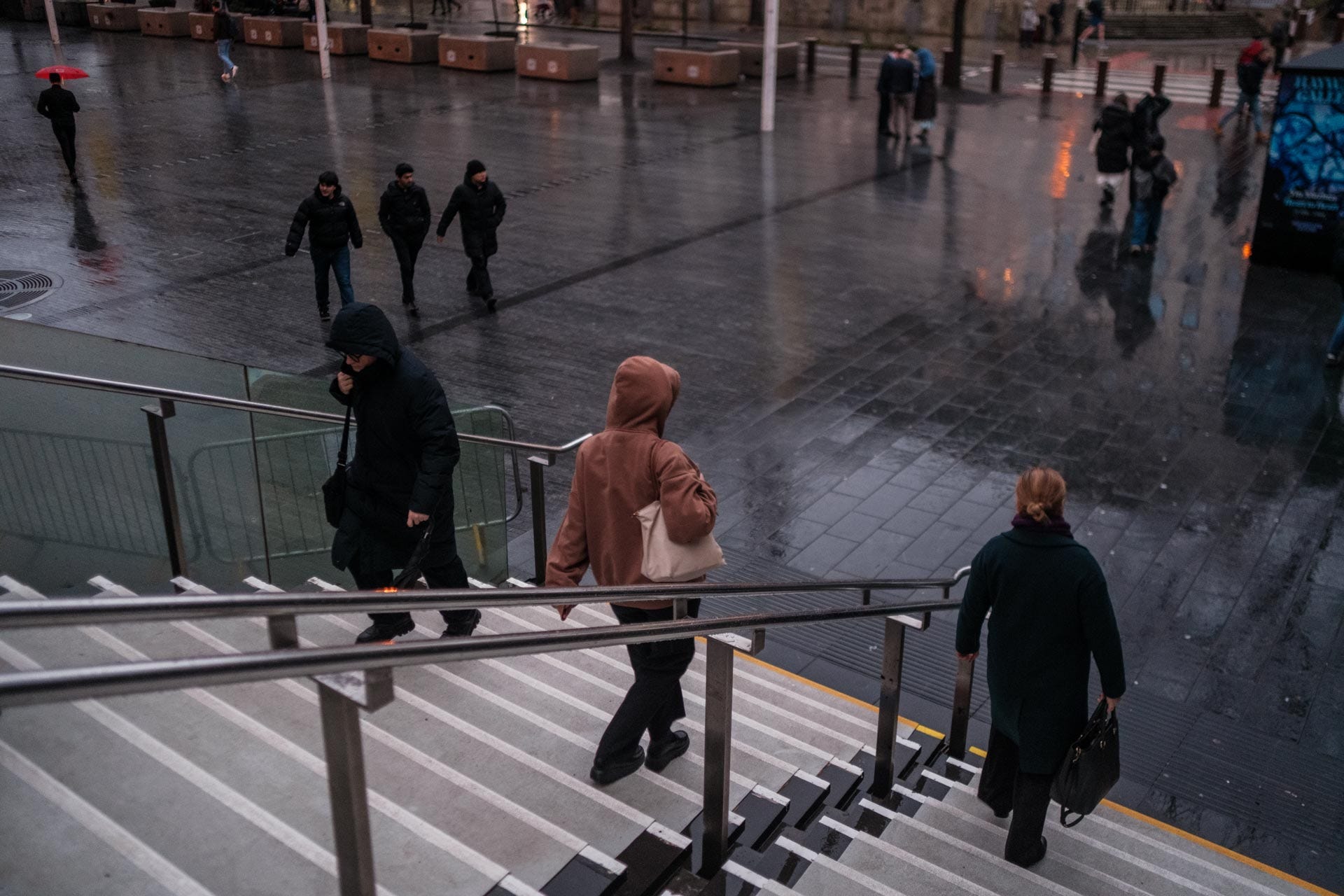 Nice shots. I especially love the first one with the umbrella-ed individuals.